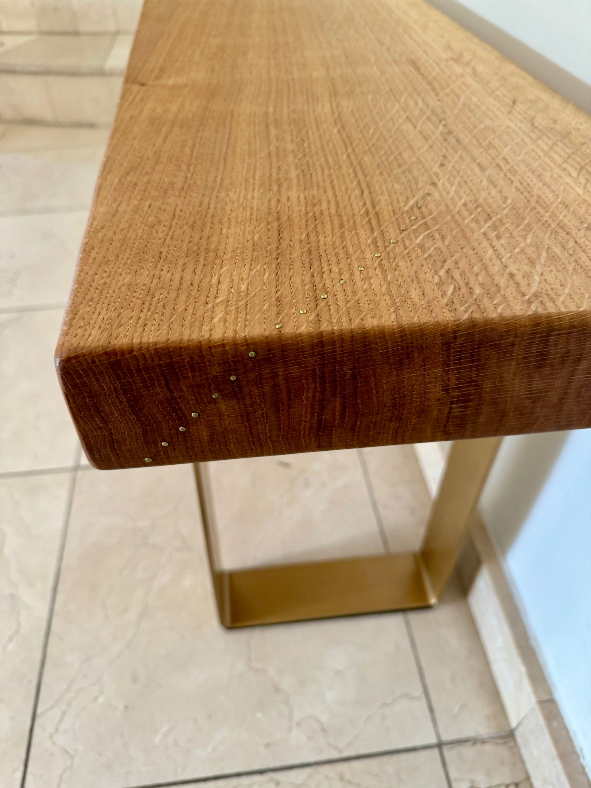 Une pièce maîtresse en chêne massif, où le bois brut rencontre la finesse du laiton.