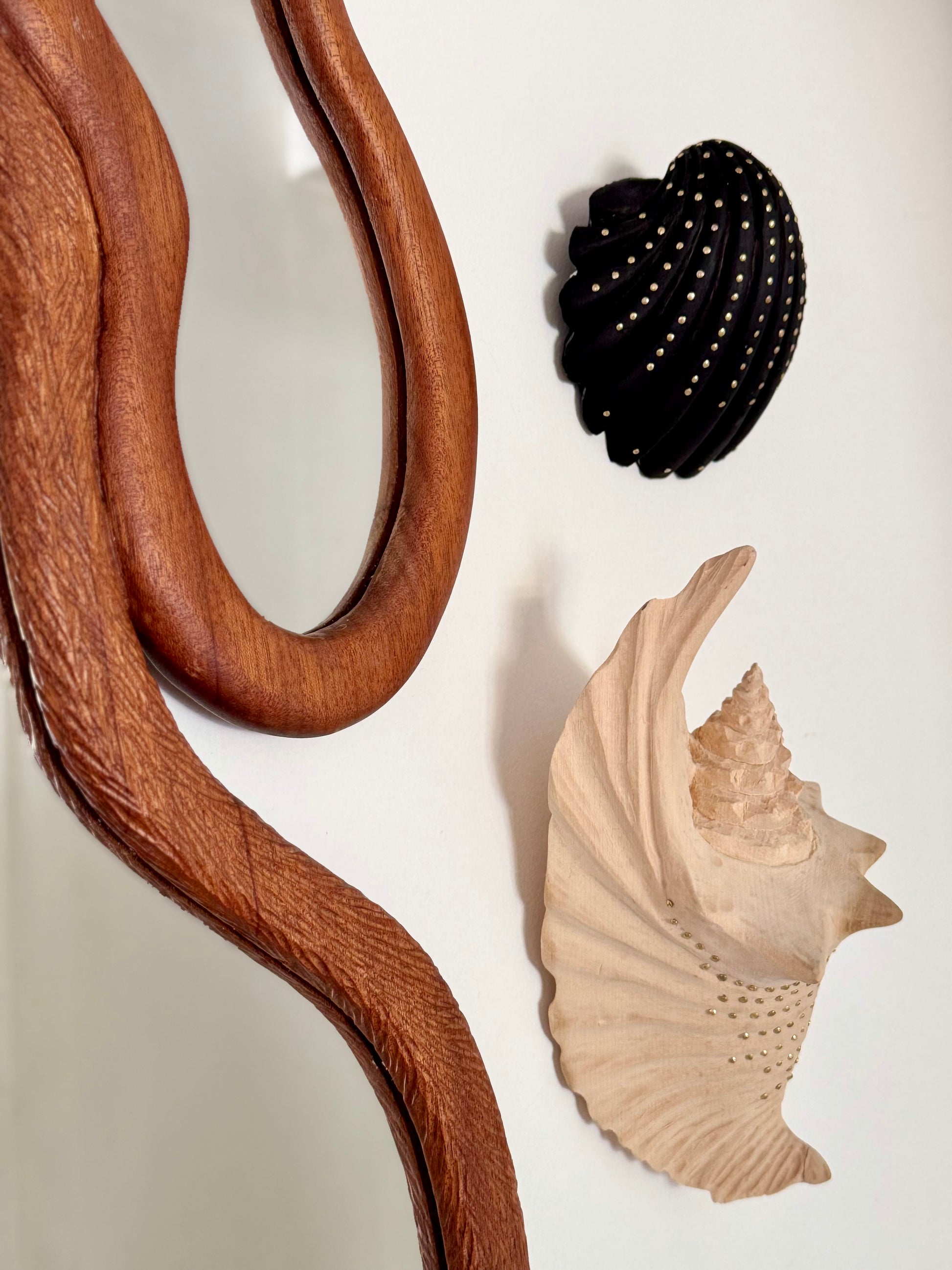 Ce miroir au cadre organique et texturé semble façonné par le vent, créant une onde visuelle qui apporte mouvement et perspective à l'espace.